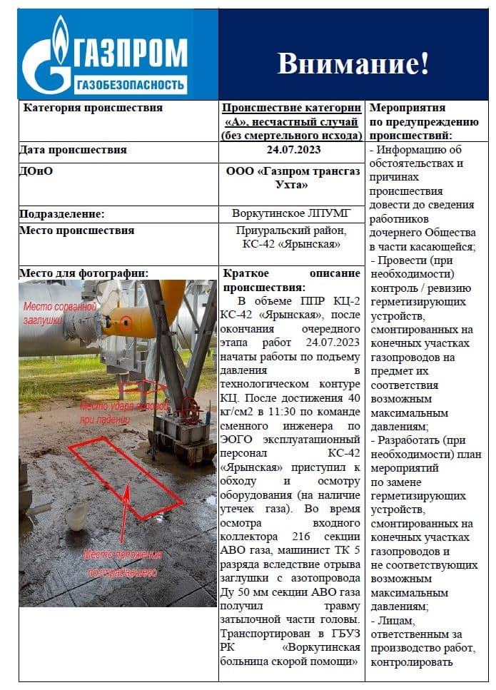 Информация о несчастном случае, в целях недопущения производственного травматизма