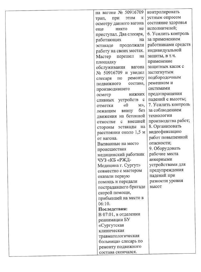 Информация о несчастных случаях, в целях недопущения производственного травматизма
